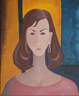 The final portrait will be painted using acrylics on canvasette. The face will be the focal point with a close up of no more than to the waist. The figure will be seated on a chair in a solid colored room.(Wearing a solid color outfit). They may wear a hat or have other features that represent themselves. No writing, style includes an oval face, long neck, long nose, large eyes & small mouth. Sketchy brush stroke with many values, Color palette is dull and toned down.