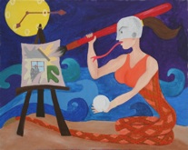 paper, pencil, acrylic paints, brushes, visual samples of the artists work